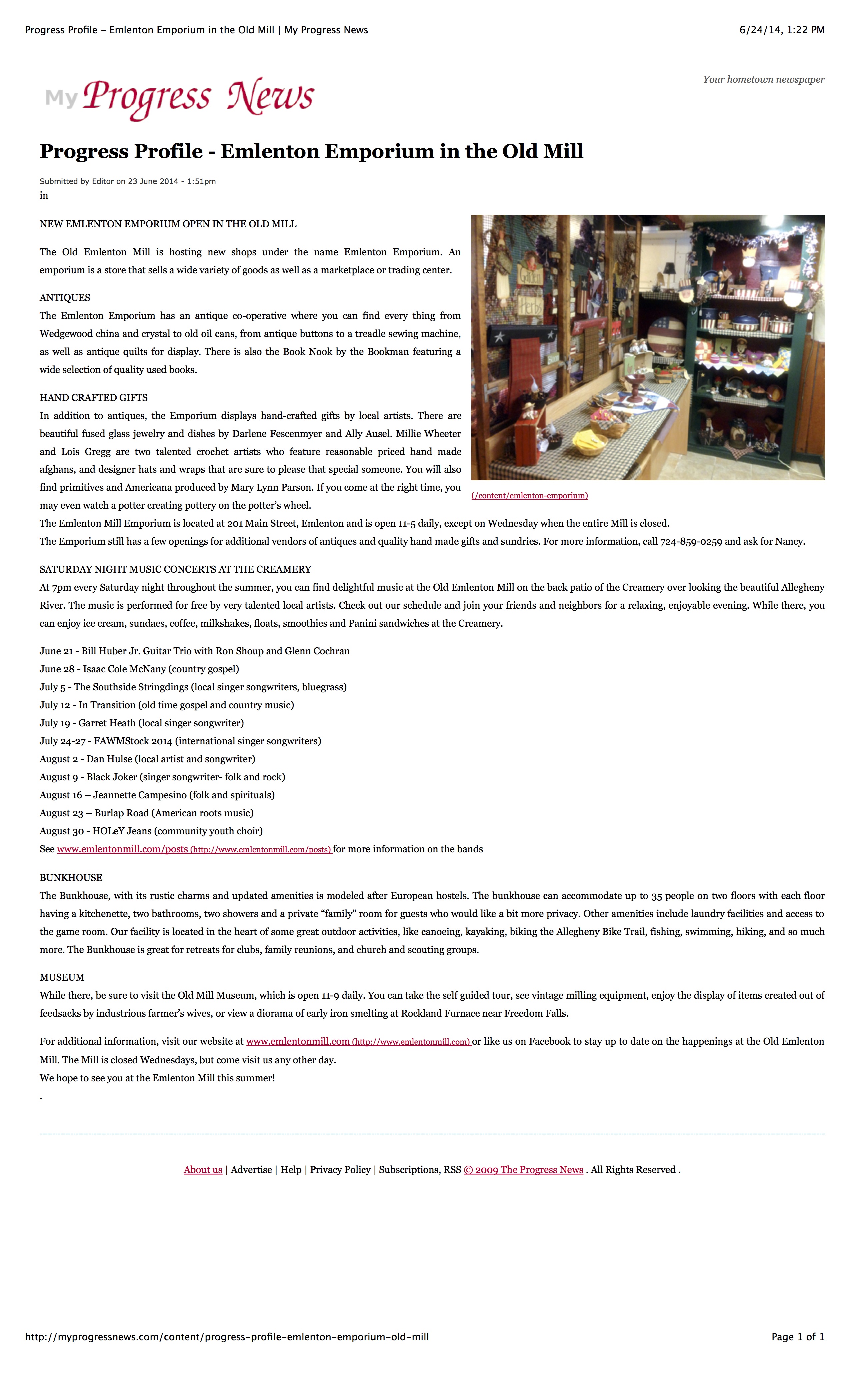 See http://www.emlentonmill.com/posts/ for more information on the bands