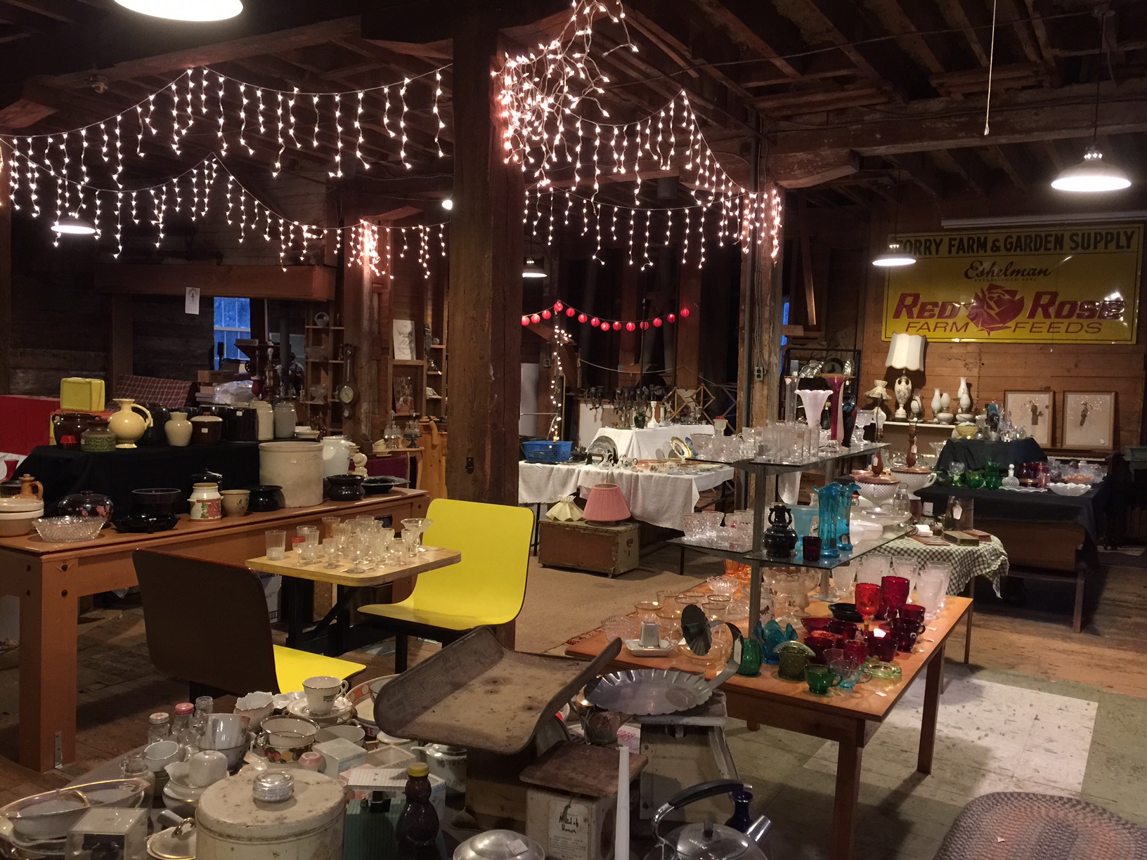 Many people remember the Mill for its two floors of Antiques in the 1990’s. They even remember the outside staircase to the second floor and if they were a vendor they remember how cold the second floor could be. We used the second floor for many things but last Fall we moved the entire inventory of Bridge Antiques to the second floor of the Mill. Nancy carefully set up displays by different categories. We had toys and bottles and boxes and tins. We used the ping pong table, the pool table, the air hockey table and the subway booths to display items.