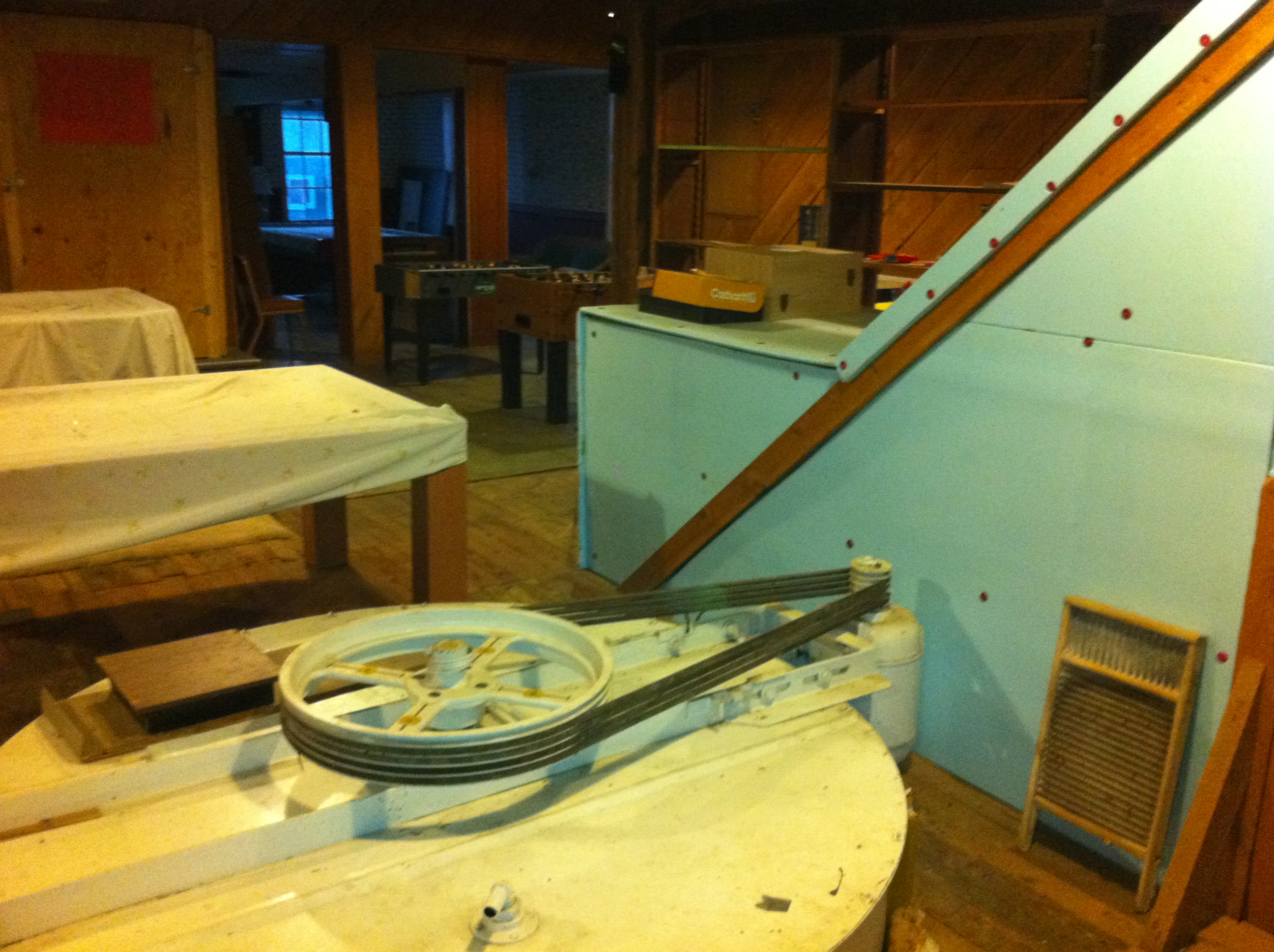 Until last Fall, the second floor was used as a game room. We had two pool tables, an air hockey table, a ping pong table, basket ball hoops and they were open for use by the kids in the community. I have also included a picture of the top of the feed mixer that was located on the second floor.