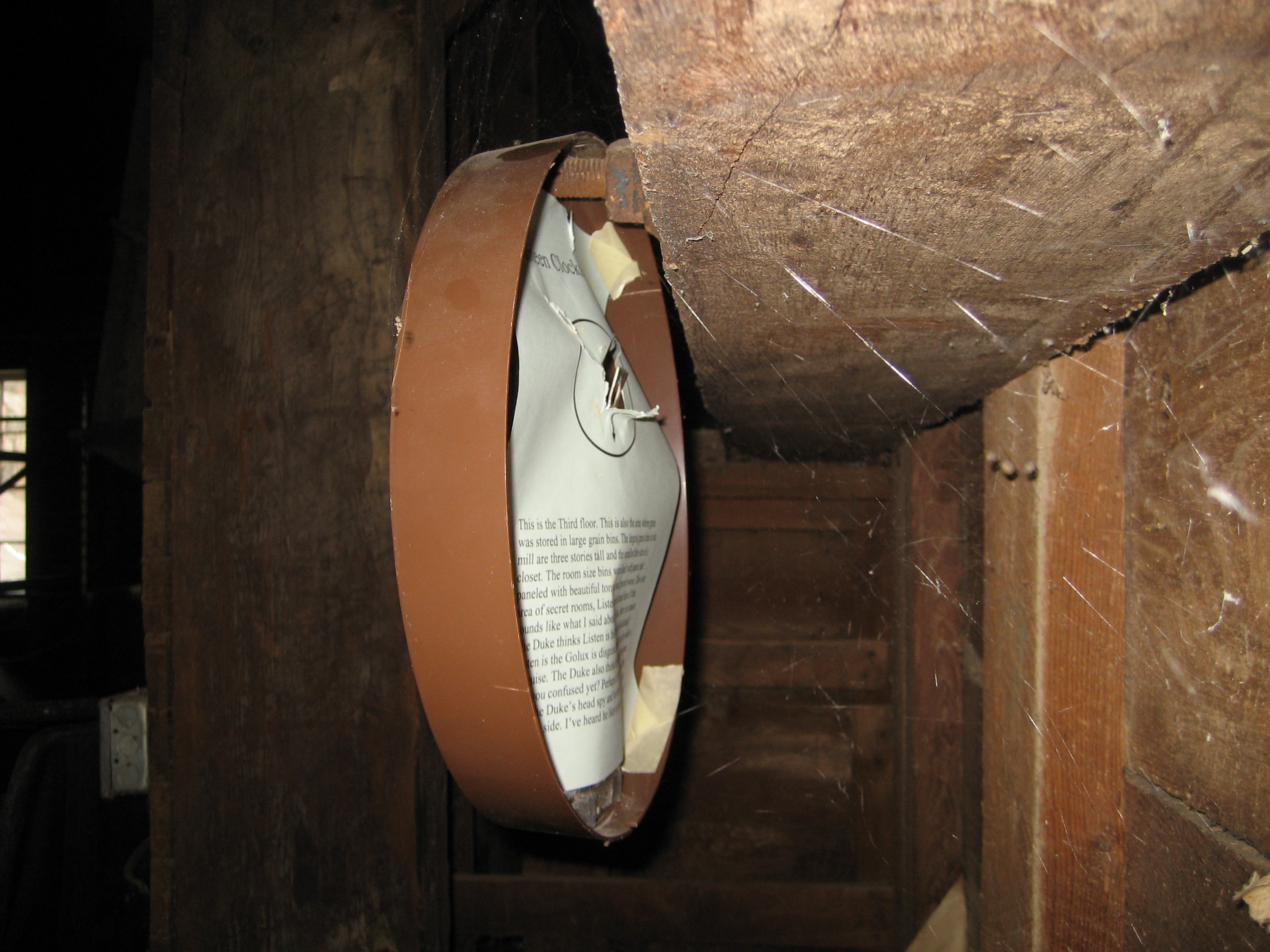 This is the Third floor. This is also the area where grain was stored in large grain bins. The largest grain bins in the mill are three stories tall and the smallest the size of a closet. This is an area of secret rooms. This room has a secret door and opens to a grain bin with a 40’ ladder to the basement. Listen can be found here. If that sounds like what I said about the Golux, there is a reason. The Duke thinks Listen is his invisible spy but actually Listen is the Golux is disguise, if invisibility can be called a disguise. The Duke also thinks he fed Listen to the geese. Are you confused yet? Perhaps it’s time you found Hark- he’s the Duke’s head spy and he even seems to be on the Duke’s side. I’ve heard he likes to play pool in his time off.
